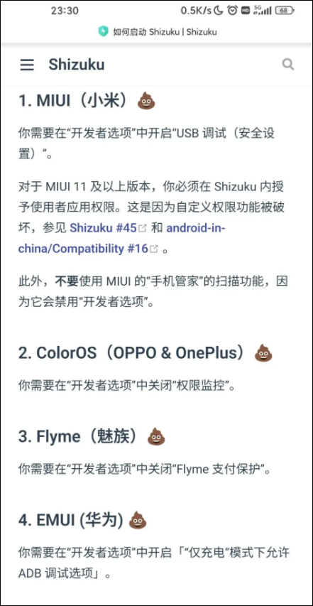 未 root 设备:遵照app中的指引,通过 adb 启动服务。使用 adb 并不难,网络上有不少教程可以帮助您学会。