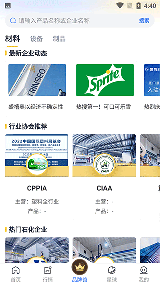 3、点击品牌馆,材料、设备、制品的信息都可以在这里查看的到;
