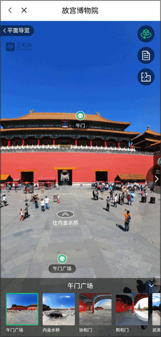 4、在页面底部可切换景区地点,视角可随意拖动切换。