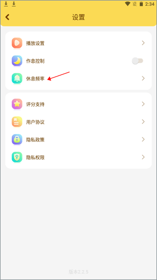 2、这里面可以设置一些参数,像播放、作息等,点击“休息频率”。