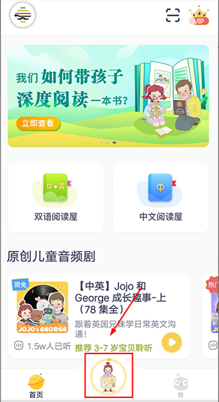 A:当孩子在观看绘本时,如果觉得太单一,我们在这里还提供多种阅读模式:伴读、趣读、跟读、拓展。多方位的满足用户的需求哦。