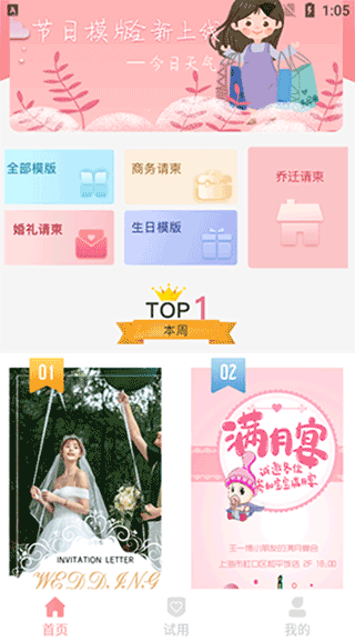 1、打开喜多多请柬制作软件,首页会展示各种模板;