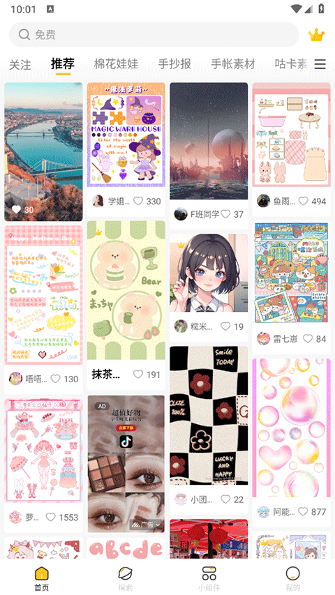 超萌鸭贴纸素材app是一款集超清壁纸、精美手帐贴纸、手抄报模板、海量图片等功能为一体的美图分享平台,该软件内为大家提供了各种类型的超清壁纸,支持一键预览锁屏、桌面效果,超级方便,预览喜欢的话可以一键设置壁纸,让你的手机桌面神奇百变,还有自动更换壁纸功能,手机壁纸每天换,让你每天都期待满满。同时超萌鸭app不仅仅是一个壁纸软件,它还提供了各种素材贴纸,手帐素材、咕卡素材、棉花娃娃、换装、花边胶带等各种精美的素材和贴纸让你找灵感、做手帐样样都行,更有背景、相框、贴纸、文字等超多功能等你体验哦,喜欢的用户快来下载吧。