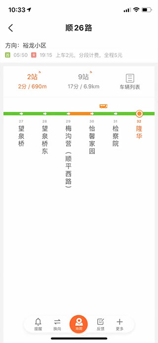 2、公交车辆实时查询:车来了车到哪了?公交车还有几分钟到?公交车还有多远?公交实时情况轻松掌握,还可以预设响铃提醒。