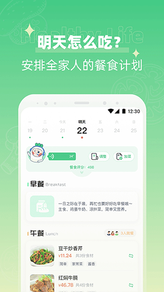 1、换菜:不喜欢AI营养师安排的菜品?没关系,你还可以自已更换喜欢的菜品