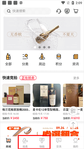 (1)打开酒虫网app,点击首页下方的【拍卖】或是【快拍】参与拍卖;