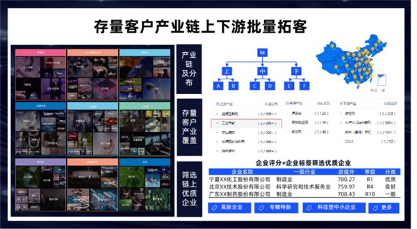 3、深化业务场景赋能:在业务需求场景上,深化了银行客群“对公信贷业务“的营销拓客与风控需求,拓展了客商管理场景下的“供应链风控”能力。