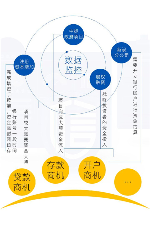例如:当存量客户因投资人/母公司增资等情况,增加注册资本,在完成工商增资手续前,资金都需要封闭留存在银行账户一段时间,银行可及时进行存款营销!