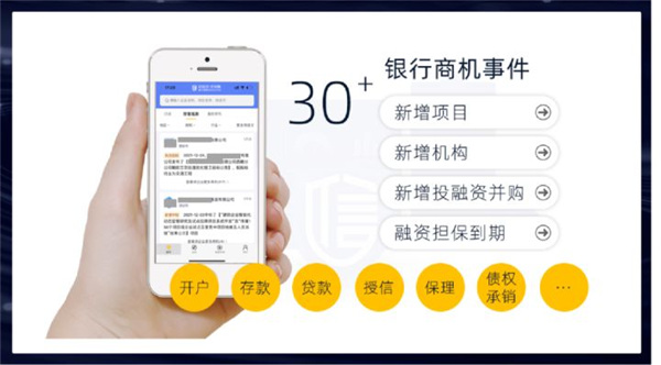 比如针对银行客户在对公信贷场景下的存量客户运营难,我们从众多商机事件中挖掘出了开户商机、存款商机、授信商机等具备银行业务信号的商机事件,将此分类聚合,实现了精准查找、个性化订阅特定行业、地区、不同类型的商机信息,银行客户经理可第一时间获得存量客户业务导向的商机信号,扩大业务份额。