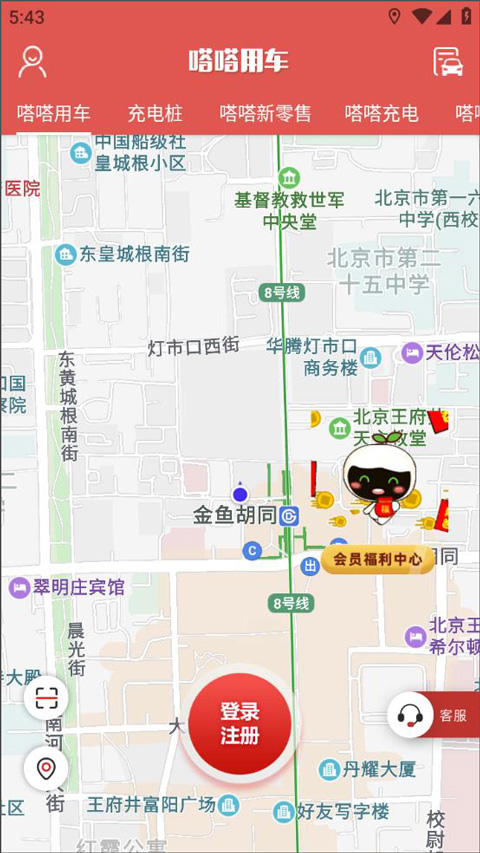 1、打开嗒嗒用车app,主要有用车、充电桩、新零售、充电、嗒嗒通等版块;