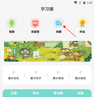 2、收藏的绘本在“学习圈”-“收藏”即可进行查看。