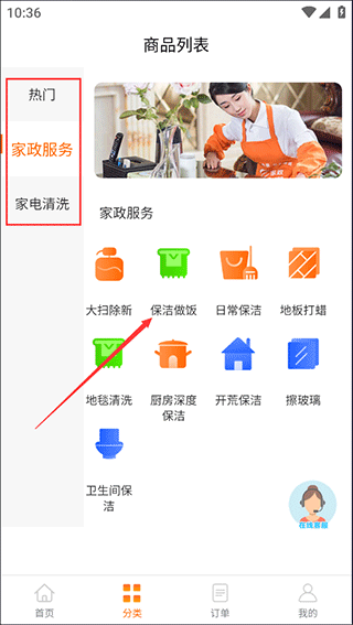 2、在当前页面选择您需要进行的家政服务分类,然后再选择家政项目;