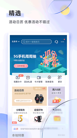 【金融】:查账还款、卡片管理、额度调整,现金随时借,分期轻松还,一站式体验。