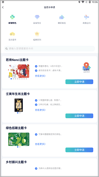 1、打开中国邮政信用卡app,点击“我要办卡”