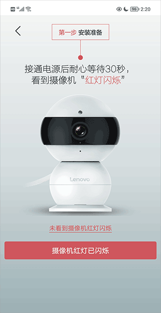 2、当摄像机好点闪烁时点击“摄像机红灯已闪烁”按键;