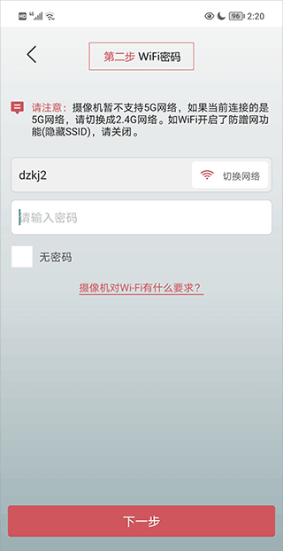 4、输入你身边网络的wifi密码后点击“下一步”;