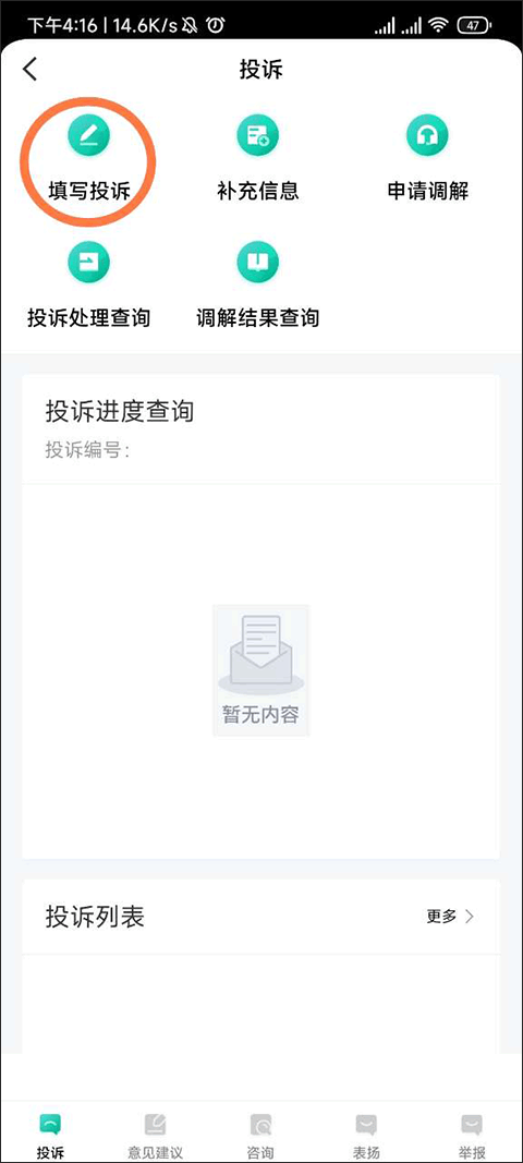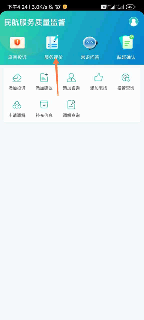 首先我们先进入app,可以看到顶部那排第一个的旅客投诉,我们点击它。