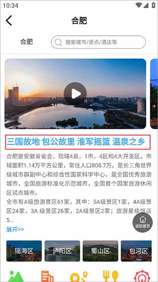 3、入眼可见的是合肥的详细介绍,左划是合肥的风景照