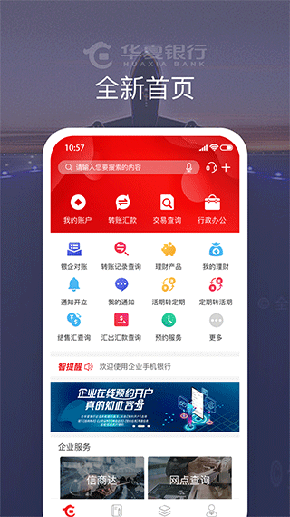 企业手机银行提供打卡签到、报销、审批、划款、企业通讯录等日常移动办公功能,移动办公好帮手。