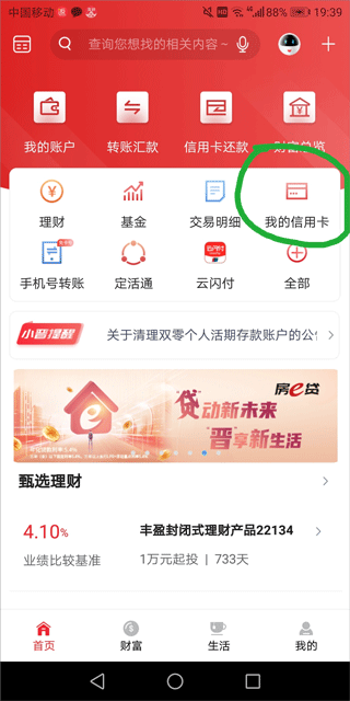 1、打开晋商手机银行app,进入首页点击“我的信用卡”