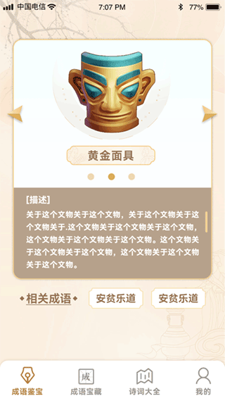 1、让你不仅可以让自己的知识库内添加一些好用的成语,而且还可以了解到很多的文物情况信息。