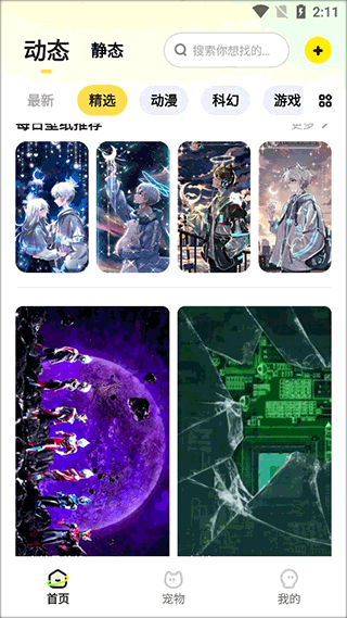 【动态壁纸】大量精选动态壁纸,可一键设置至桌面,让你的手机桌面动起来;