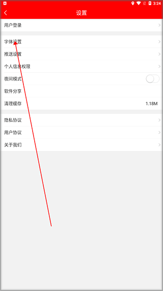 3、进入设置界面,点击【字体设置】。
