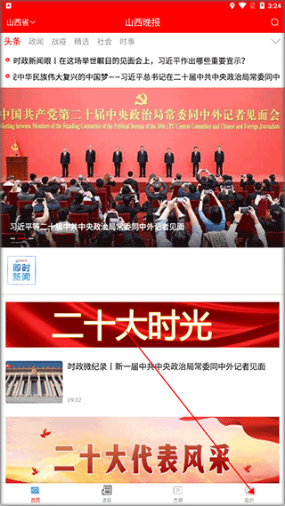 1、下载安装好山西晚报app,进入首页,点击我的。
