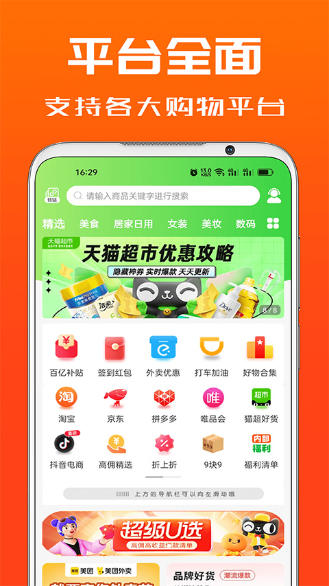 4、【平台全面】支持各大电商平台优惠券和返利、外卖红包和返利