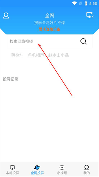 2、打开全网投屏,搜索播放视频,点击投屏即可;