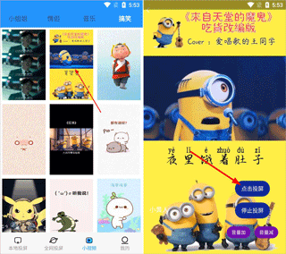 3、打开小视频,点击播放,右侧点击投屏即可;