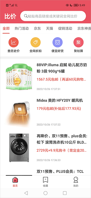 你是否在购物的时候有过想查这件商品的历史价格的想法?你是否想知道某件商品什么时候购买是最实惠的?等等党app因人们的这种想法而生,原名比价购物助手app,软件功能强大,可以为用户提供商品的历史价格,让大家买到最实惠的商品!软件首页便向各位购买者提供了查询历史价格的功能、全网折扣商品的展示、便宜好货的展示,还有包括京东、天猫在内的各种商品渠道供消费者选择;在收藏页面,用户可以在这里查看之前收藏的商品,大家大可以利用这个功能来对比某些同类型的商品价格,这么实用的比价软件,大家需要就快来下载使用吧!