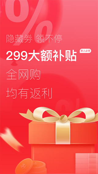 1、隐藏卷领不停,299大额红包全网购,均有返利;