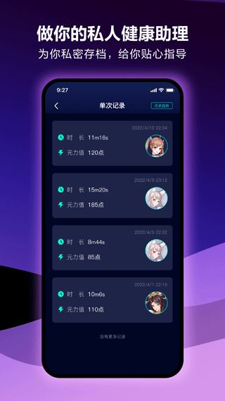 每次冲完,还有个元力存档,记录你的时间,元梦天使还会对你进行战绩评价,让你改进。 如果你的时长和频率达到一定级别,还会给你奖励元力值。