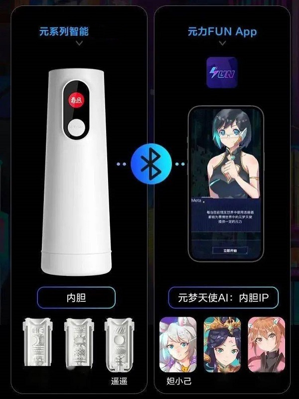 当然,既然是成人用品,那么这些虚拟角色自然不只是吉祥物那么简单。根据官方介绍,这三个虚拟角色分别对应现实中售卖的三种内胆,每个角色不仅各带5种专属律动程序,而且用户在使用过程中还可以搭配专属的元力FUN应用程序与虚拟人物互动,真的让你做到在虚拟世界和纸片人“色色”。