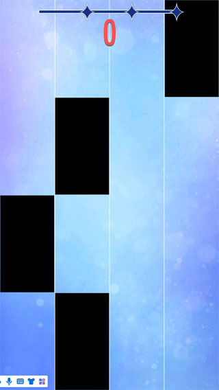 ①选择一首歌曲开始,界面会出现四个赛道,每个赛道会随歌曲的乐谱出现黑色的钢琴键,从上向下移动,点击钢琴键就会发出音符的声音,连续点击成功,音乐就会流畅的播放出来。