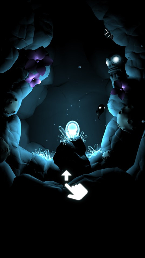 《Seashine 深海之光》的操作极其简单:滑动屏幕即可控制这只没有任何运动器官的透明生物,朝着对应的方向冲刺一小段距离。你的任务就是让水母吃掉海洋中发光的动植物维持生命,在这片海域中生存下去。不过在实际体验中,我们会发现游戏的操控难度并不低,这是因为即便玩家什么也不做,水母也绝不会静止不动,海水的波动也会使其发生不规则的移动。