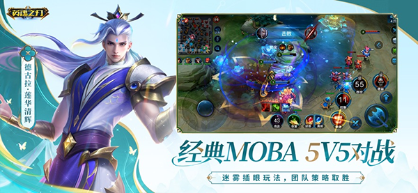 玩法上,英魂之刃采用的游戏操作方式是虚拟摇杆配合按键的操作形式,在技能按键上比市面上的同类手游多一个,完美的还原了端游的4个技能设定,而普通攻击这分为攻击英雄和攻击小兵两种,这个设定解决了在战斗是没有办法锁定敌方英雄的困境。