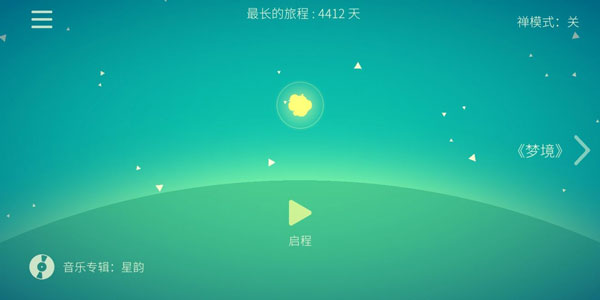 在游戏中玩家需要在各种星球上旅行,并随着跑酷的进行变转四季,游戏就在这颜色各异的星空下进行,玩家要把握好每一点星光,感受季节的轮回。另外,星季游戏还有两种玩法模式可供选择,分为梦境模式和禅模式,在梦境中,游戏画风变成了手绘风格,也加入了全新的音乐专辑和新的挑战,在禅模式中则主打的是放松心情,享受旅程,非常的有意思。