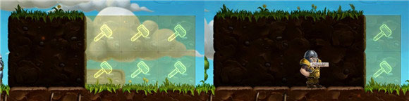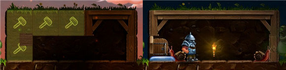 注意:Craft the World的世界都是双层,墙分前墙后背墙,土地也一样,当你挖掉一块土地后,你会发现它的背面还有一块土地。