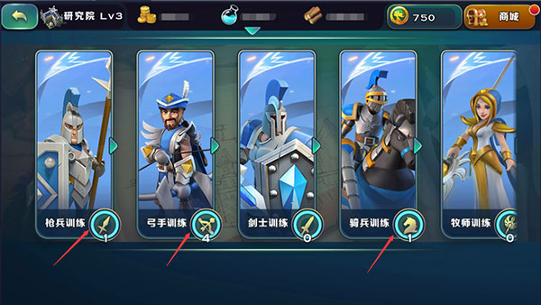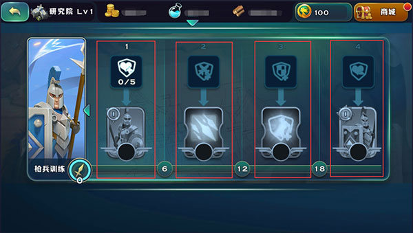 点击每个兵种的形象,即可打开对应兵种的研究界面;