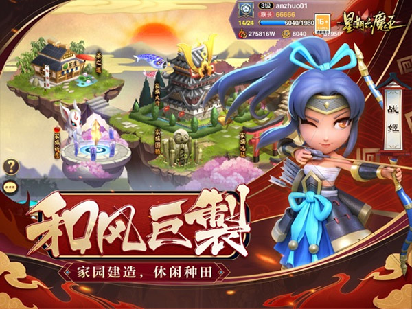星期六魔王是一款以日本战国时代为背景的策略卡牌游戏。彼时天下群雄并起,身负各自的正义,魔王的野心带来了杀戮,但也只有魔王才能终结乱世,引领大和走向统一。在游戏中,天下名将,尽在你一手掌握之中。你将经历桶狭间、姊川、川中岛等诸大战役;可以游玩于尾张、越后、甲斐等诸多战国名地;可以选择与柳生家钻研「新阴流」剑术,亦可与宫本武藏学习《五轮书》剑法;更有鹤翼、鱼鳞、偃月等多种阵立的兵法思想增加学识。丰富的游戏内容与深邃的文化底蕴浑然一体,使玩家体验到独一无二的游戏乐趣。