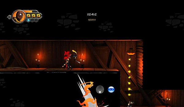 当主角跑向敌人时,会有短暂的时间忍者刀会闪光,这时攻击会触发移动攻击效果,攻击力更强,上面提到的对付铁拳就是用这招