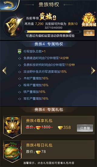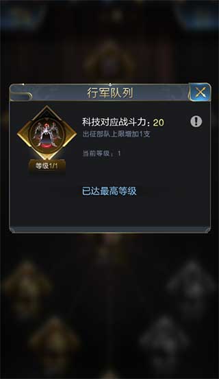 可以说我们的行军队列如果有条件一定要进行提升,只有更多地行军队列才能让我们的发展更加快捷,让我们的战斗更加灵活。其中贵族等级达到四级可以开启一个额外的行军队列,这渠道我们可以通过每日的登陆来累计,也可以直接通过充值来实现。其余的行军队列则需要通过科技的研究来进行了,在兵法类的科技中有着行军队列的科技,作为第一个科技门槛很低,随后还有扩展的中级行军队列和高级行军队列,后两者的难度就要大上不少,需要我们一定的科技基础才能实现。