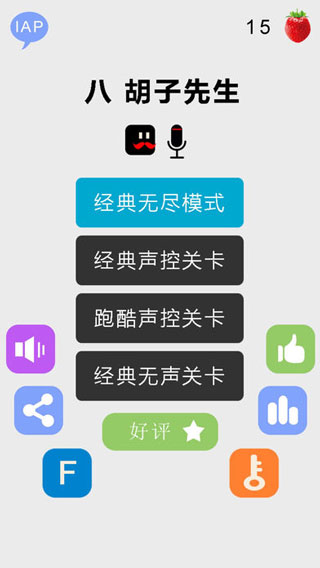 八胡子先生苹果版是一款完全免费的魔性八分音符酱声控游戏,该游戏整体画面清新简洁,界面UI制作精简大方,不但拥有经典无尽、经典声控、牌库声控、经典无声四大模式关卡可供玩家选择挑战,而且游戏的操作非常的简单,全程以发声的模式进行,期间发出小声主角前行、大声则跳跃,尖叫的话则跳的更高。此外,游戏虽然游戏非常好玩有趣,但玩时还需谨慎,以免影响自己的声带,同时切勿在大众场所畅玩,以免影响到其他人的正常活动。