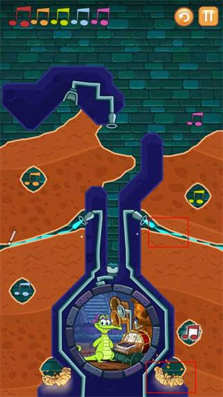 2、第一关就是按照正确的顺序将水导入所有的音符,并且还要保证小鳄鱼有水洗澡。