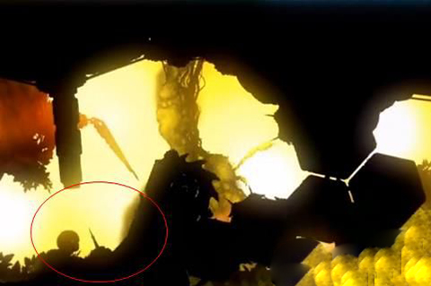 这个地方是难点,玩家吃完上面的克隆之后需要向左边移动,保证有一个克隆可以吃到下方的能量体,从而缩小,让上方的克隆体穿过小的隧道,红色箭头部位的机关需要玩家触碰
