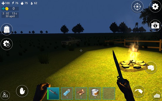 26、攻击野猪的时候,它也会攻击我们,小编建议大家前期不要去惹野猪,选择小鹿比较好,不过它受到攻击会逃跑,我们需要一边追一边攻击,直到它倒地,就能获得肉食了。有了水,有了肉、有了火堆和汽车,剩下的就是不断收集材料来提升自己的生活水平了。