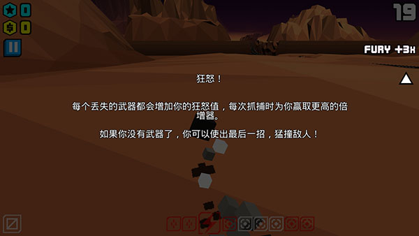 3、每个丢失的武器都会增加你的狂怒值,每次抓捕时为你赢取更高的金币,如果没有武器了,你可以使出最后一招,猛撞敌人!