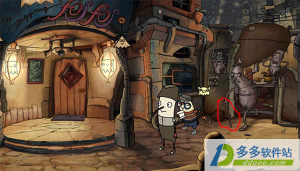 回到第一幕用你得到的传单去捡起那个地上的鱼(开始是太滑不让捡)得到:用纸包的鱼。